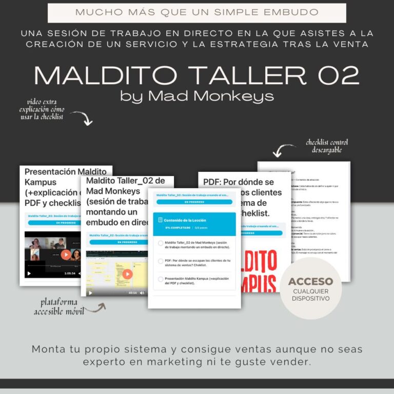 Y ahora tú puedes copiar ese sistema, porque grabamos una sesión de 40 min de trabajo de Mad Monkeys donde te contamos el paso a paso que deberías seguir siempre que quieras lanzar algo. Lo que los marketers llaman embudo, pero las palabras técnicas no nos gustan.